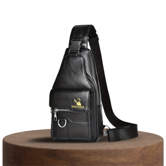 Daxton | Vertical Leather Sling Bag with Secure Flap & Zips