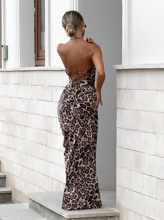 Farina - Fashionable leopard-print camisole Maxi Dress