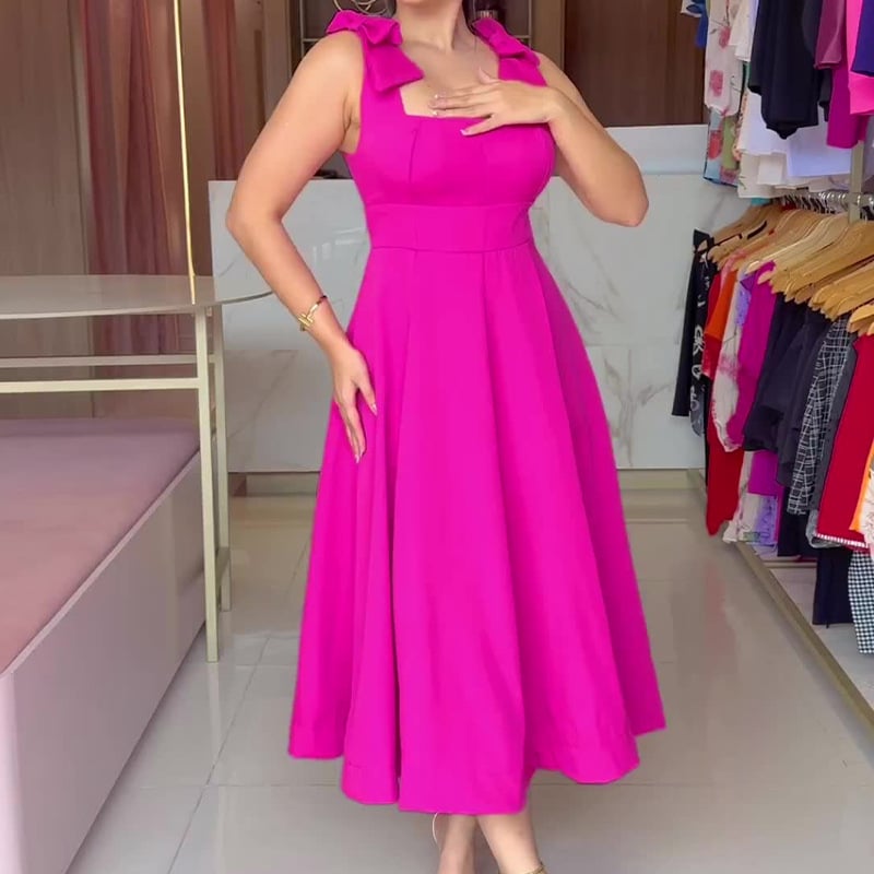 This dress combines timeless elegance with everyday comfort, designed to highlight your silhouette while keeping you at ease. The sleek A-line cut and high waist create a flattering fit, perfect for any occasion. Crafted from soft polyester, it offers breathability and movement without sacrificing sophistication. The bow backless detail adds a touch of playful charm, making it a standout piece in your wardrobe.