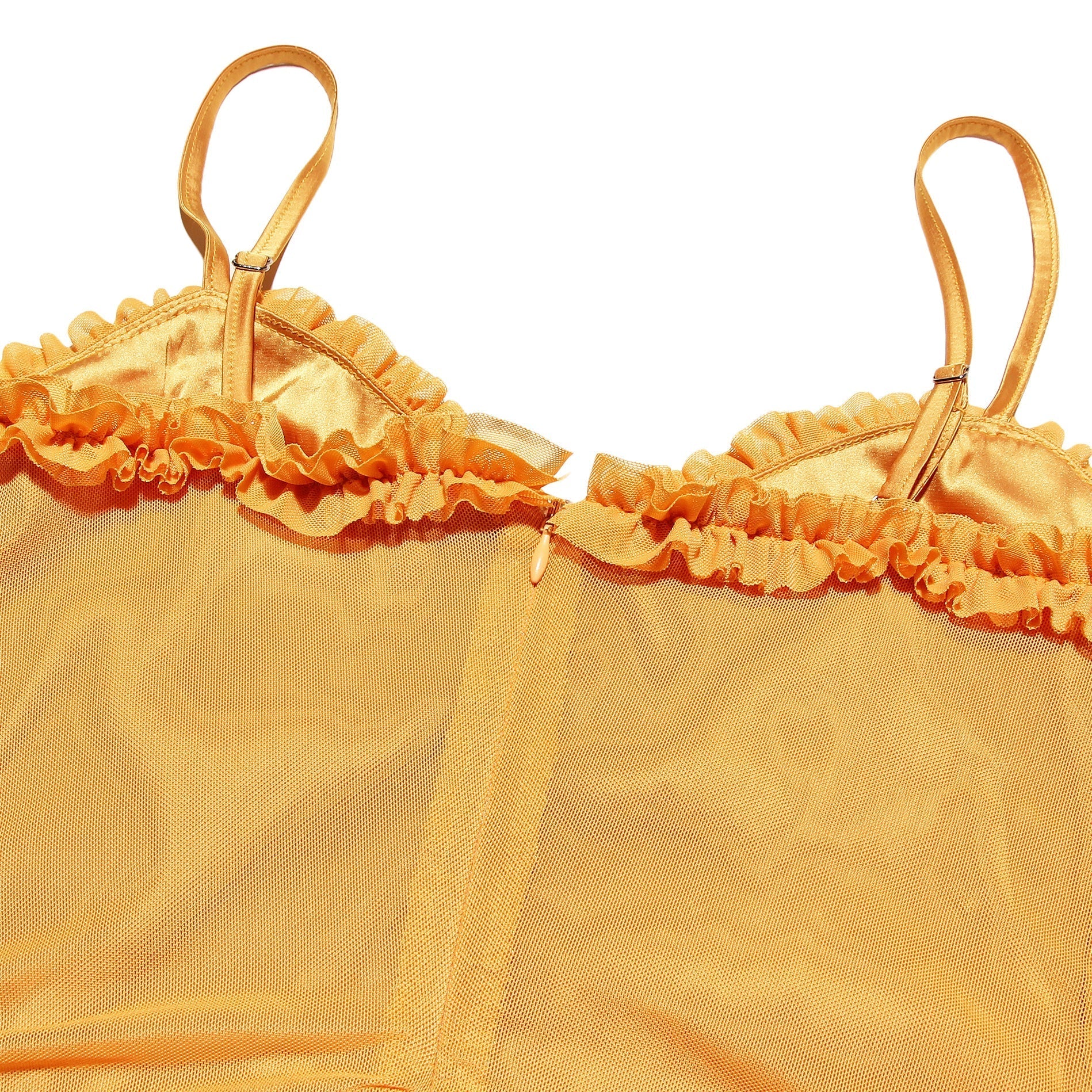 - The ruffle front and waterfall detailing create a show-stopping look that turns heads at any event, making you feel effortlessly glamorous.